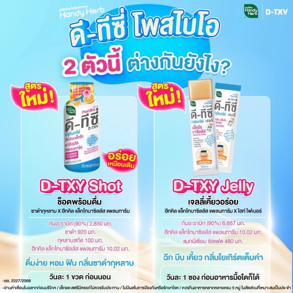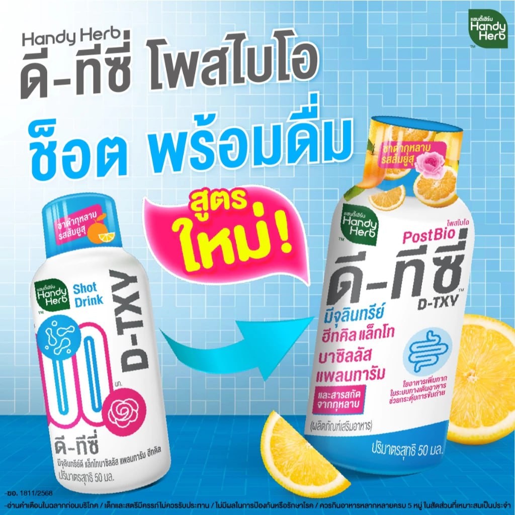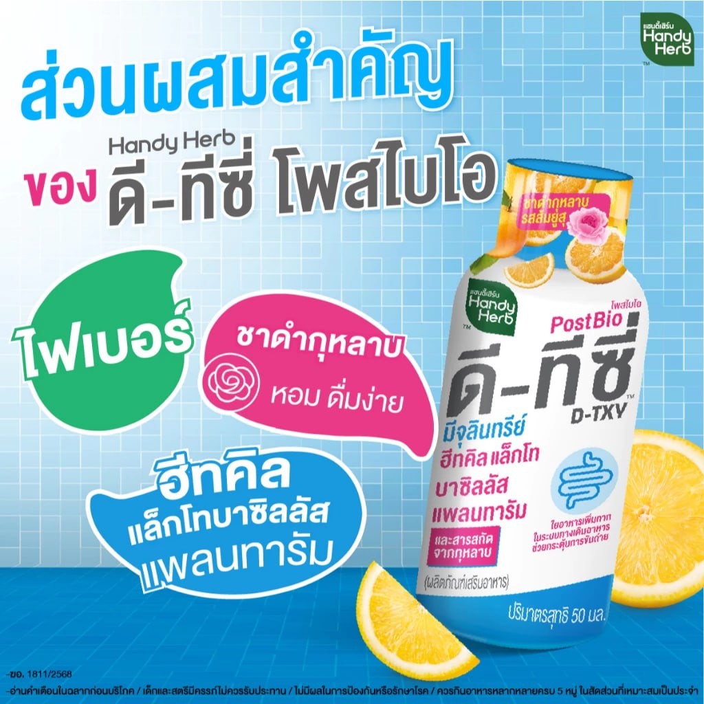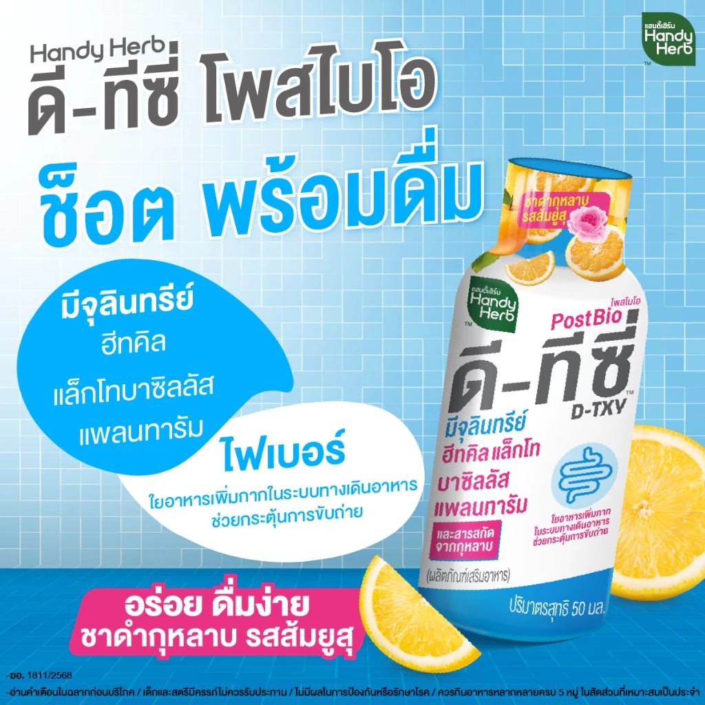 [ฉลากใหม่] HandyHerb D-TXY PostBio แฮนดี้เฮิร์บ ดี-ทีซี่ โพสไบโอ ไฟเบอร์ และชาดำกุหลาบรสส้มยูสุ