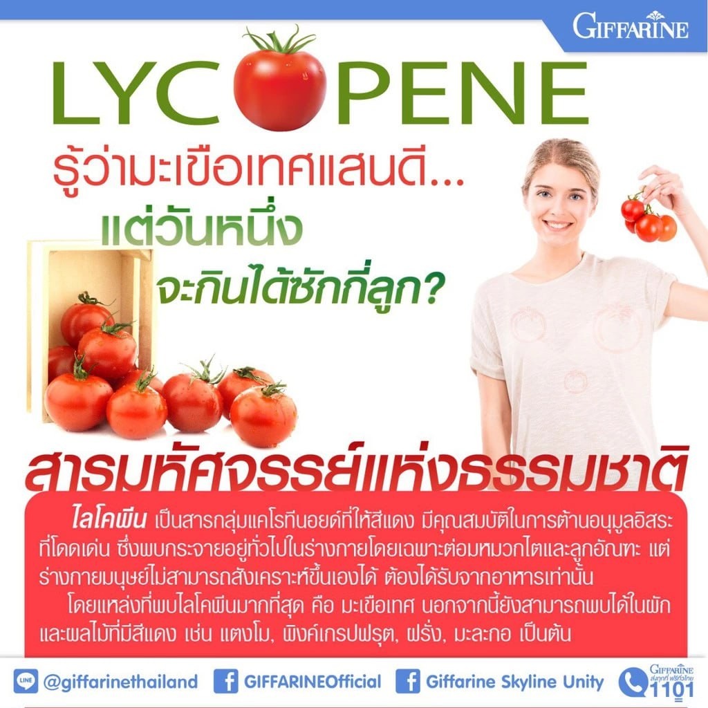 ไลโคปีน กิฟฟารีน ผสมวิตามินซี Lycopene with Vitamin C Giffarine อาหารเสริมจากมะเขือเทศสกัด 30 แคปซูล