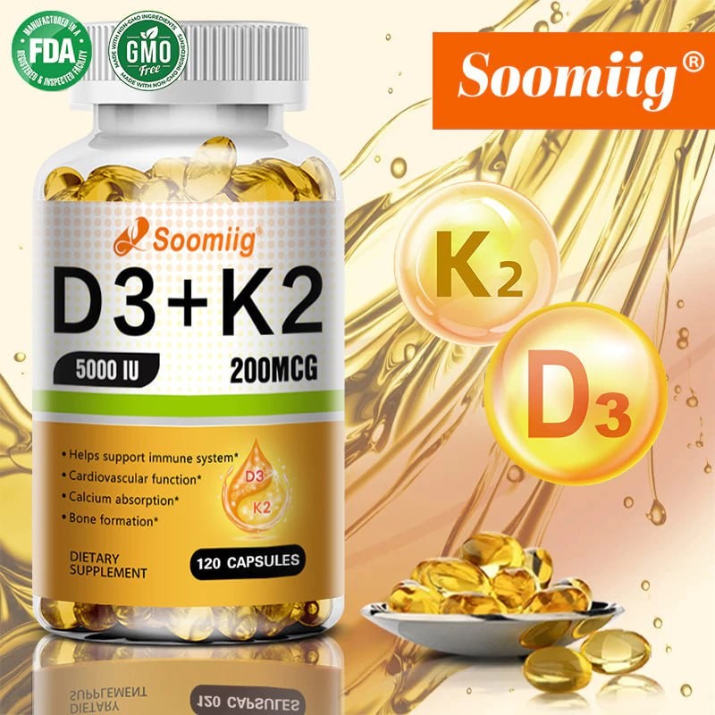 การสนับสนุนกระดูกที่มีประสิทธิภาพ - วิตามิน D3 ใช้วิตามิน K2 เพื่อเพิ่มประสิทธิภาพสูงสุด แคปซูลเหล่านี้ส่งเสริมการดูดซึมแคลเซียมและ D3 ที่ถูกต้องในขณะที่กระจายไปยังกระดูกของคุณอย่างถูกต้องในจุดที่คุณต้องการมากที่สุด