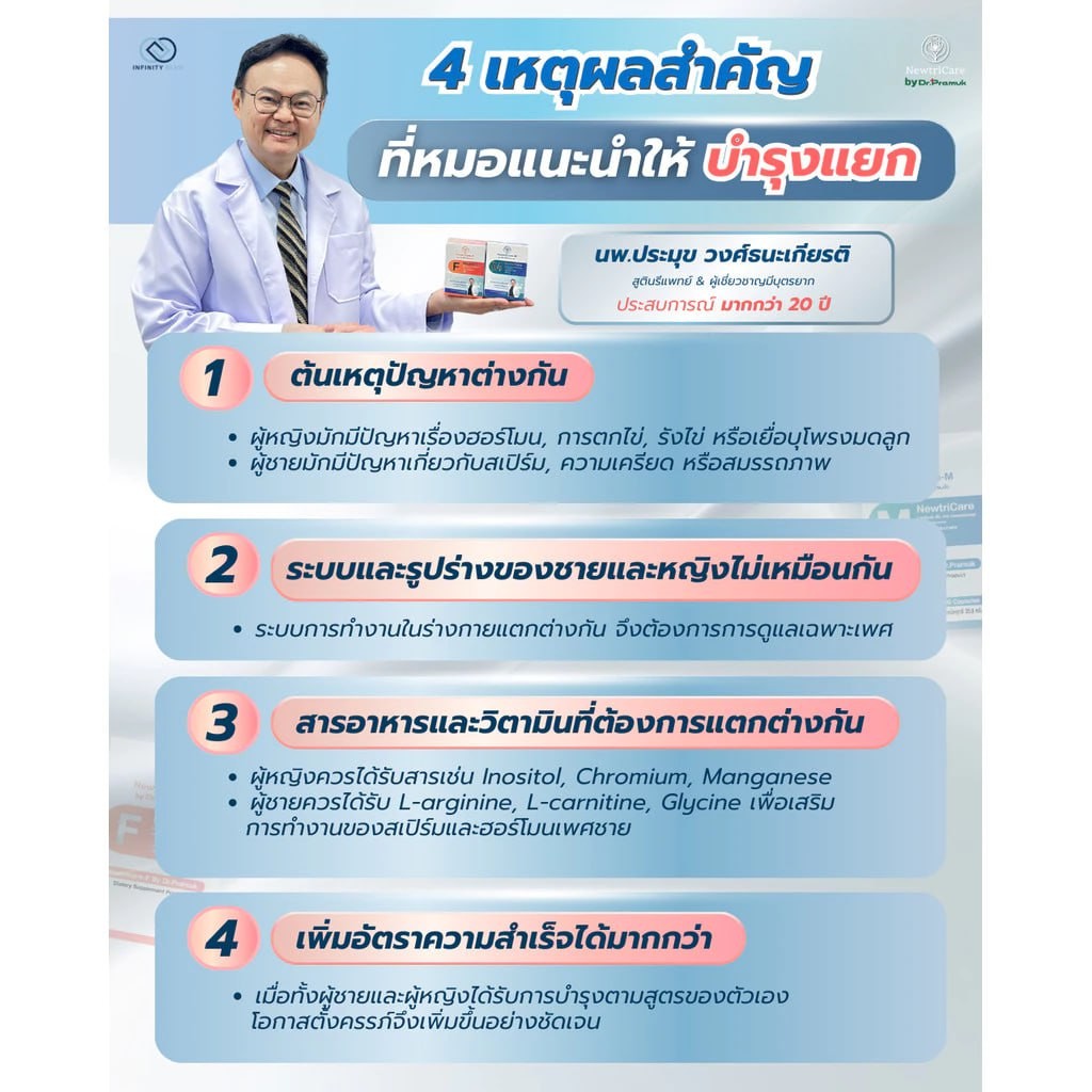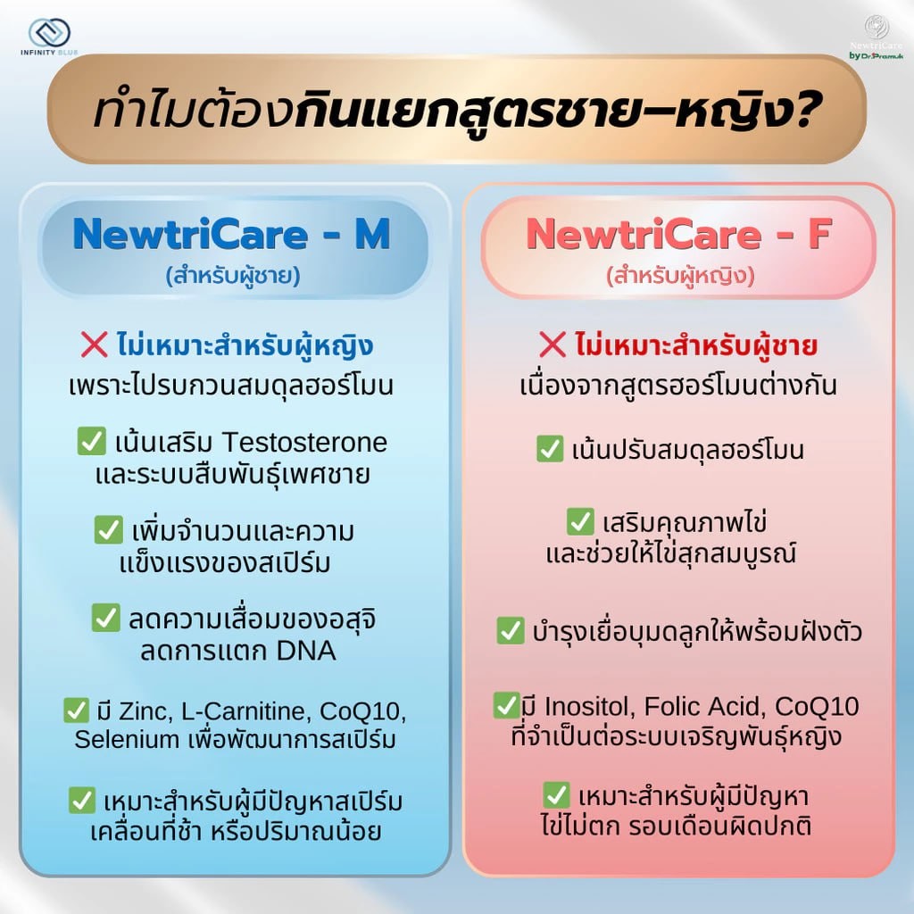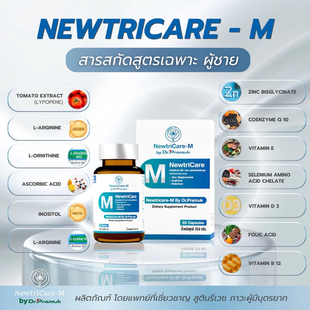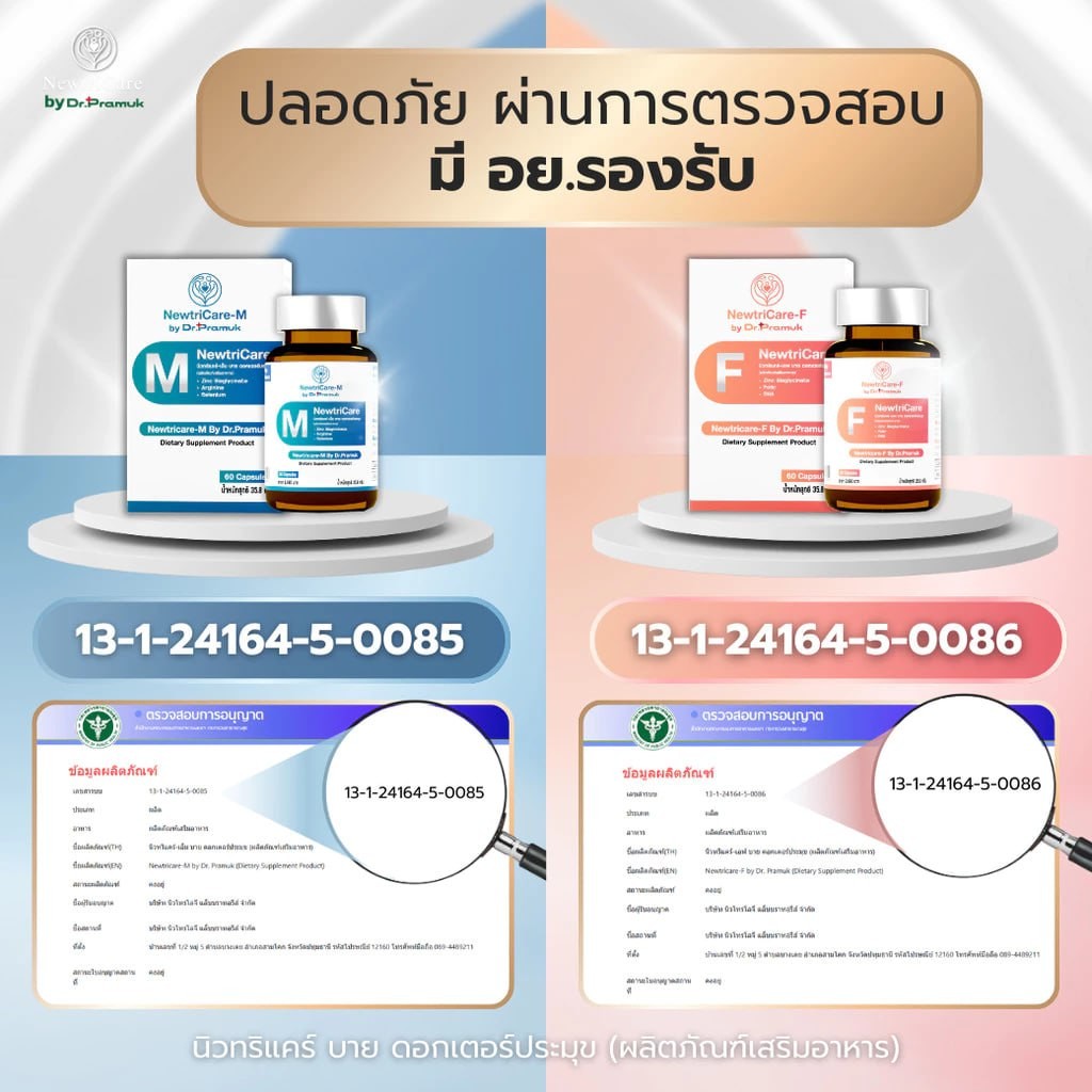 (สินค้าใหม่!!!) Newtricare-M + Newtricare-F by Dr.Pramuk ผลิตภัณฑ์เสริม วิตามินสำหรับผู้ชายและผู้หญิงที่อยากมีบุตร ฮอร์โมนสมดุล ร่างกายเเข็งเเรง (1กระปุก/60เม็ด)