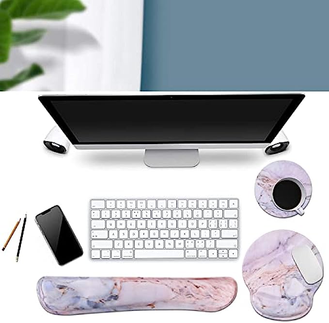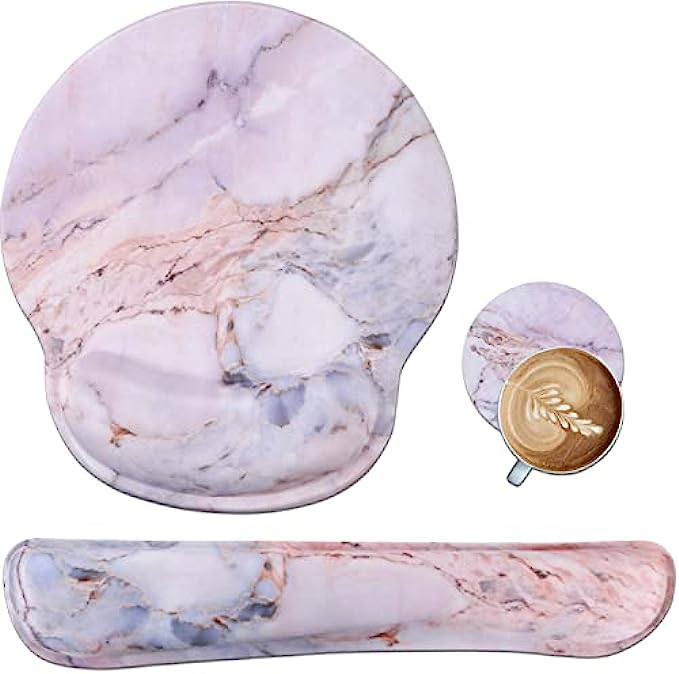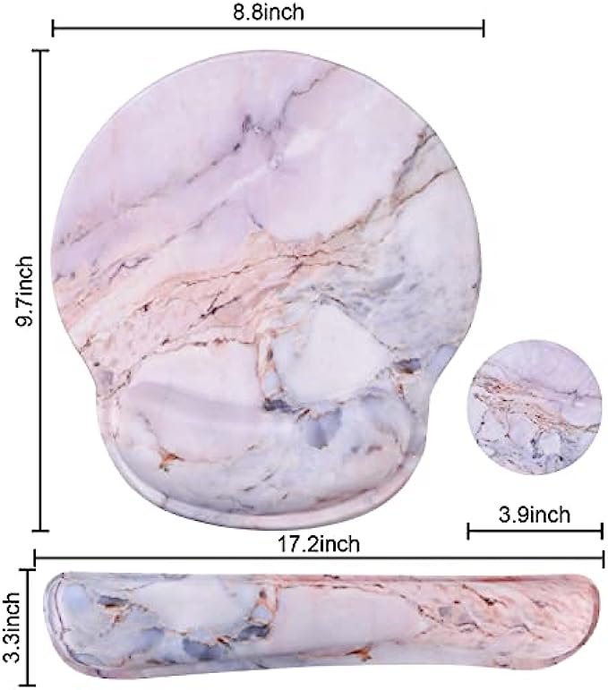• 3 in 1 Set with Standard Size: The mouse pad with wrist rest measures 9.7inchx8.8inch, the keyboard wrist rest measures 17.2inchx3.3inch and the diameter of cup coaster is 3.9inch. This mouse pad set has excellent shape and size, it is suitable for office work, home, travel or other occasions.