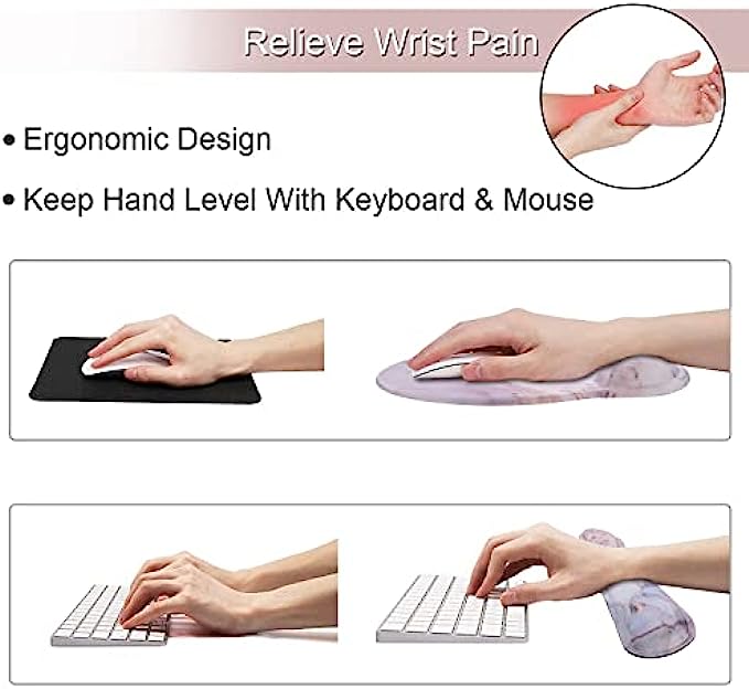 • Ergonomic Design: The ergonomic mouse pad set is perfectly curved for your wrist and hand, provide soft support to relieve the pressure, fatigue and pain of your wrist. Effectively avoid damage and other wrist problems caused by friction between the wrist and the desktop.