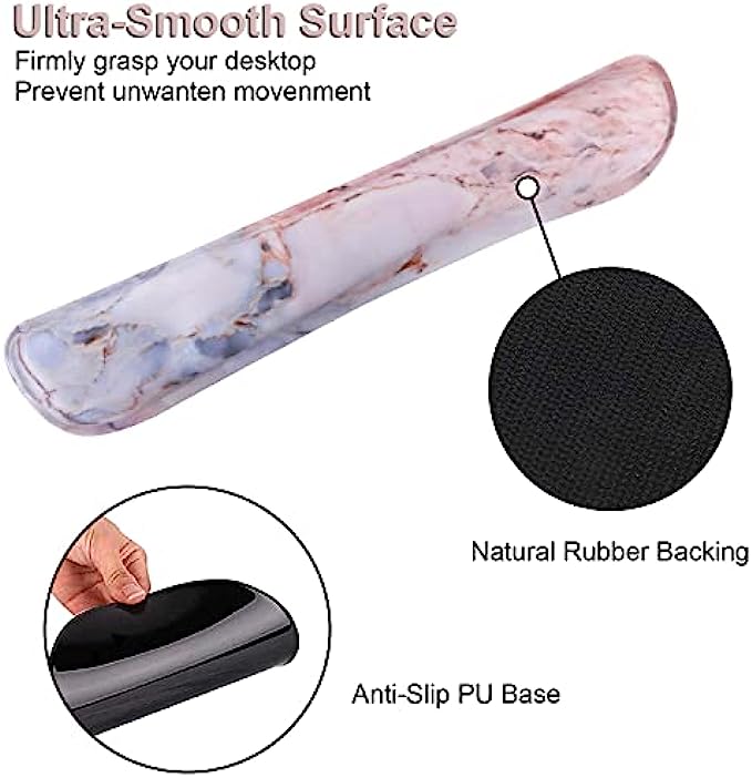 • Anti-Slip Base: The bottom of the keyboard wrist rest using anti-skid natural rubber material, and the mouse pad adopts PU base, which will strongly grasp the desk so that you will never be disturbed by the accident move of your mouse, you can concentrate your minds on the work or enjoy stable mouse operation at work or in game. Edges has been reinforced to prevent deformation and damage to guarantee the longer hours of use.