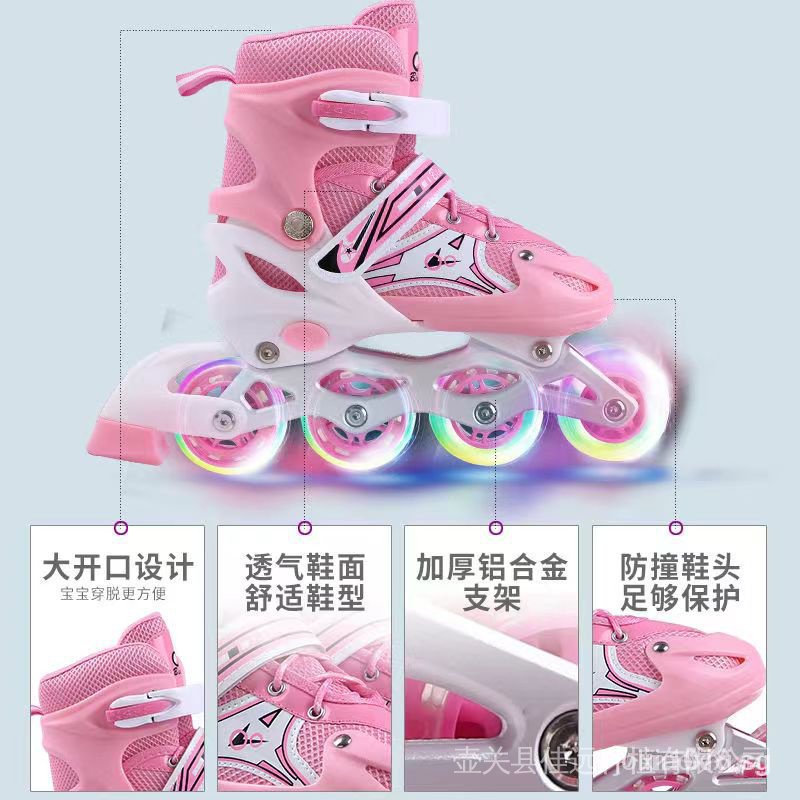 [In stock]Roller Skating Inline Skate Children's Kids Aldult Scooter Skating Adjustable Sizes Blade Bundle FULL LED Flashing Wheels College Students Beginner Roller Shoes Skates Se