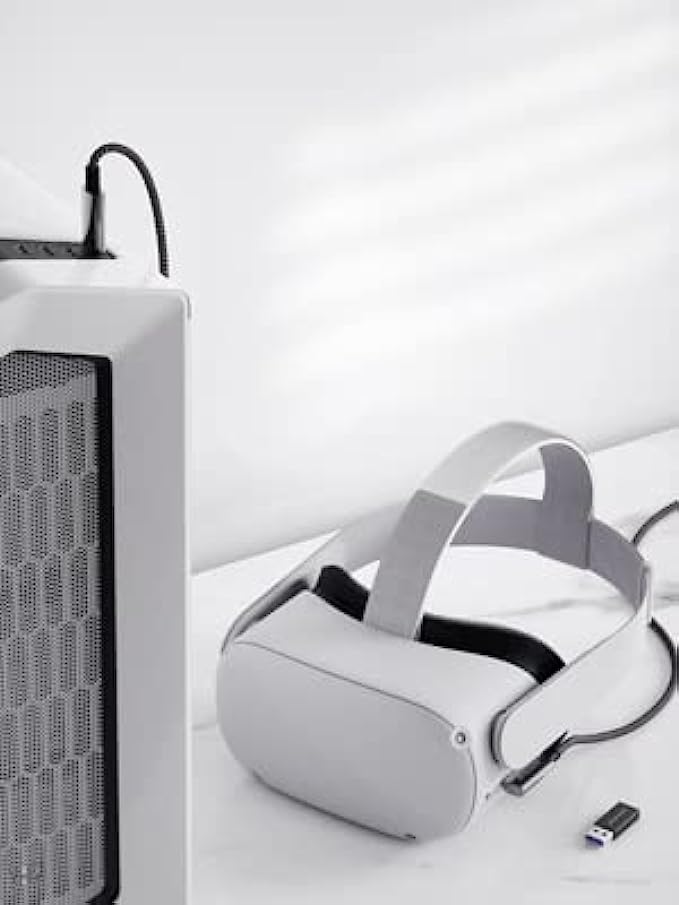 • End 90 Degree Angle: USB C 90 Degree Angle End so it doesn't stick out & is easy to use VR headset. It's more convenient and more comfortable for playing games.