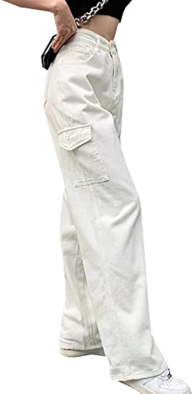 LONGYIDA High Waisted Baggy Jeans for Women Stretch Straight Y2K Wide Leg Denim Pants Casual Cargo Jeans