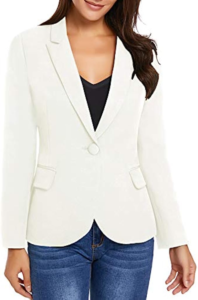 This blazer jackets for women business casual with shoulder pads, two buttons closure is basic and stylish. Wearing this womens lightweight blazer will make you stunning no matter for a casual or a professional look.