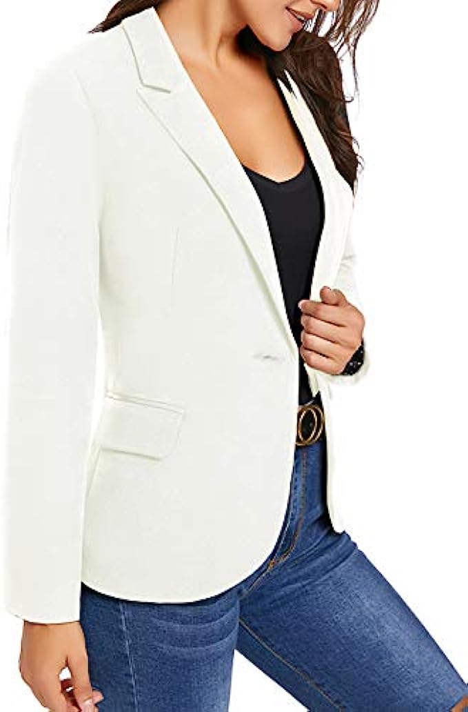 This blazer jackets for women business casual with shoulder pads, two buttons closure is basic and stylish. Wearing this womens lightweight blazer will make you stunning no matter for a casual or a professional look.