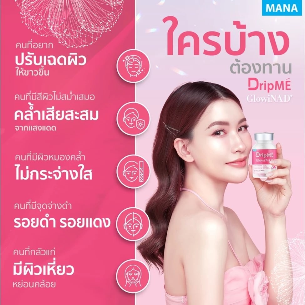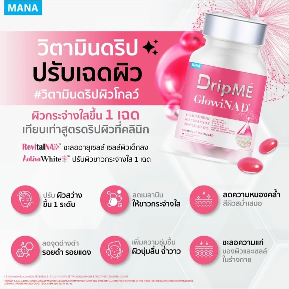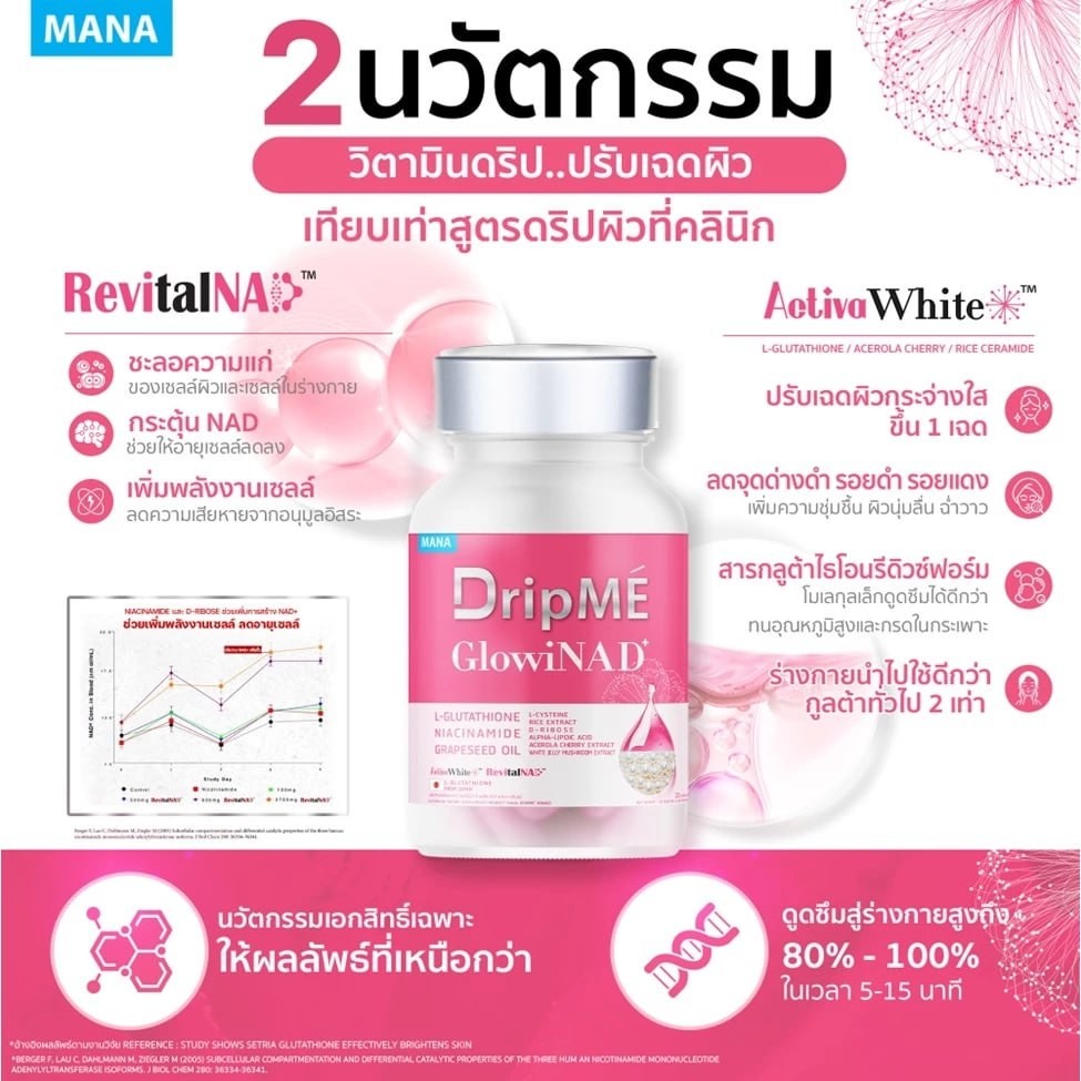 ผลิตภัณฑ์เสริมอาหาร โกลว์วิน่า ดี พลัส ตรา มานา ดริปเม่