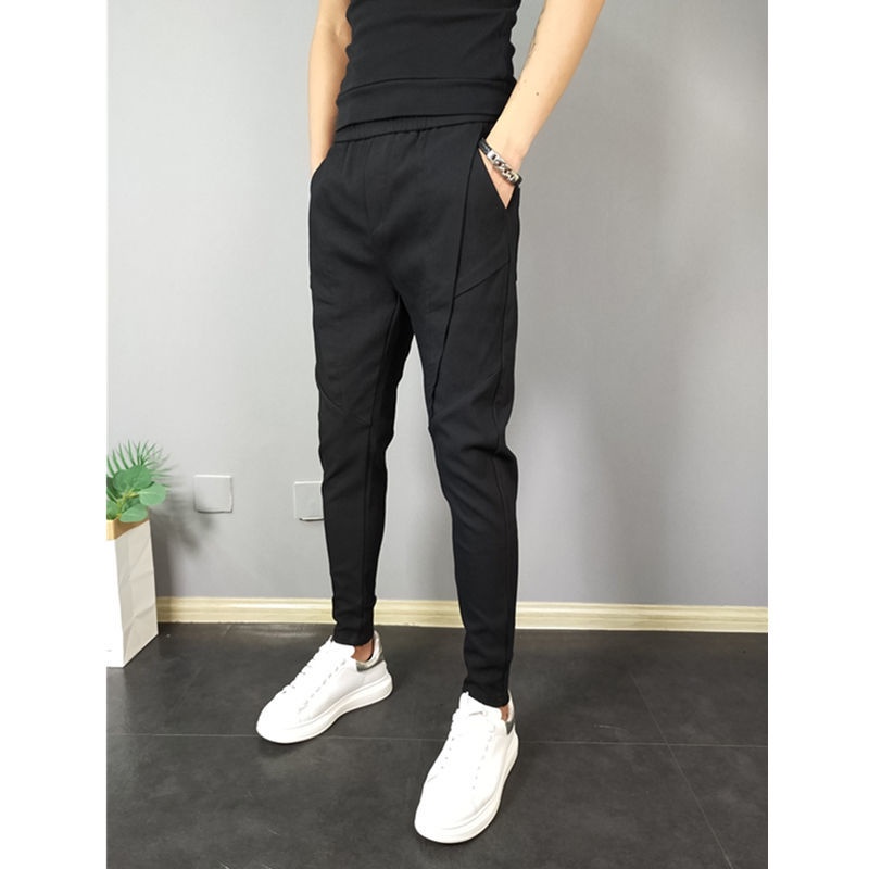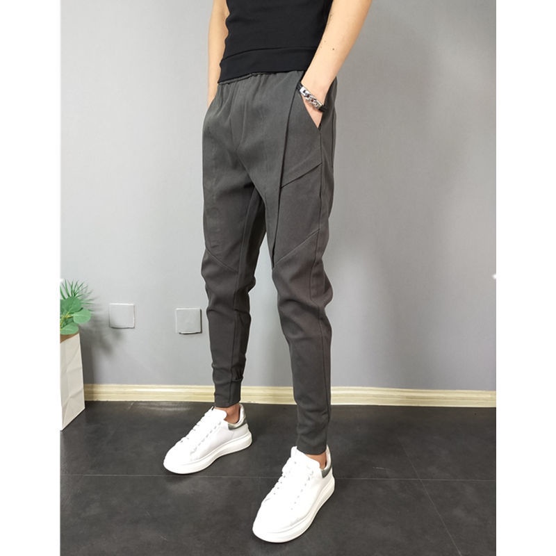 Men's Korean Style Solid Color Jogging Pant Man Slim Fit Drawstring Casual Ankle Pants
