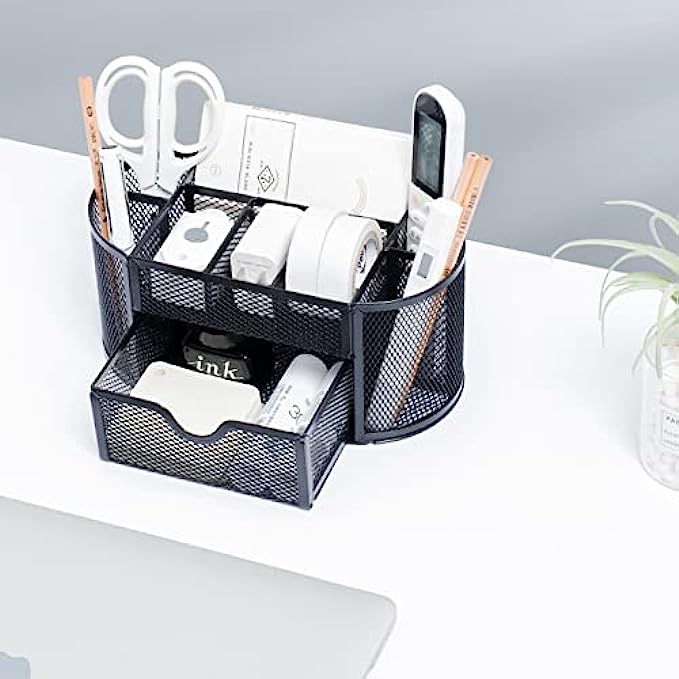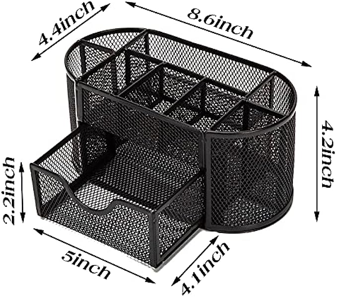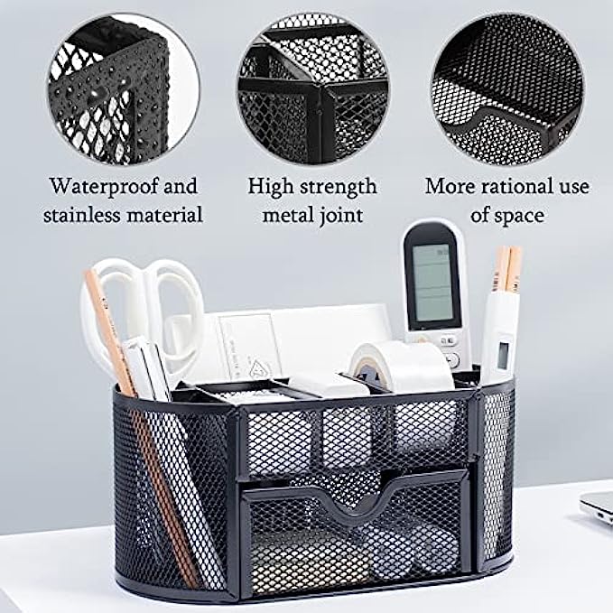 • Function: our mesh pen holder has 8 compartments and a drawer, which can be used for classification and storage, and can make your desktop items more orderly.