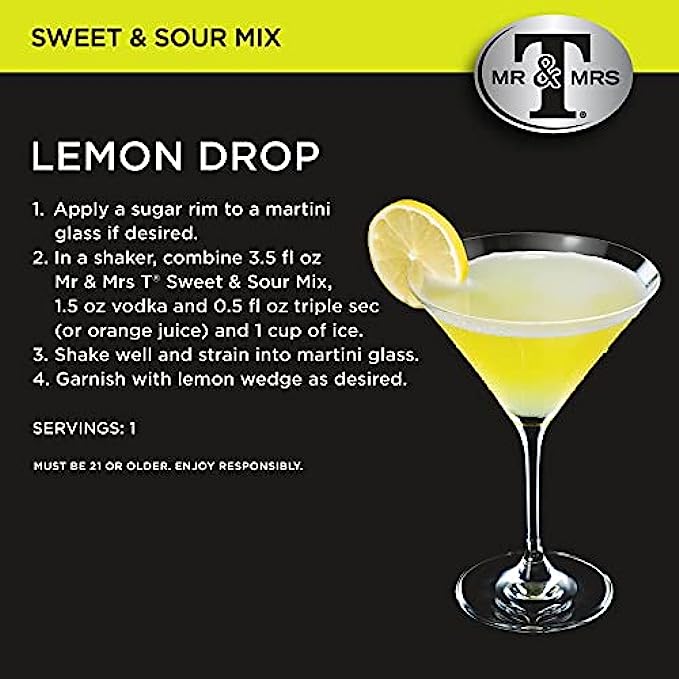 MADE FROM SCRATCH TASTE: With a made-from-scratch taste, Mr & Mrs T’s Sweet & Sour Mix is ready to be mixed with your favorite spirits right out of the bottle