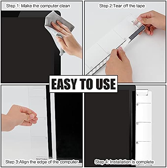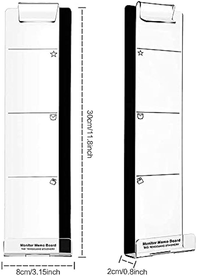 • DURABLE MATERIAL: Display sides panel is made of transparent acrylic material, durable, simple and stylish. Monitor memo board is easy to fit, just tear off the sticker and hang it on the edges of both sides of the monitor screen.