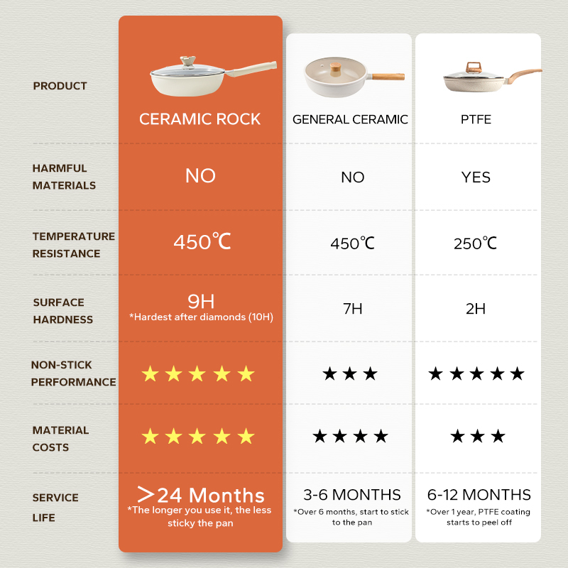 [New Arrival] Honcook Redchef Ceramic Rock Wok With Lid 32/30/28cm Non Toxic, PTFE & PFOA Free- Oven Safe Suitable for All Stove Incl. Induction