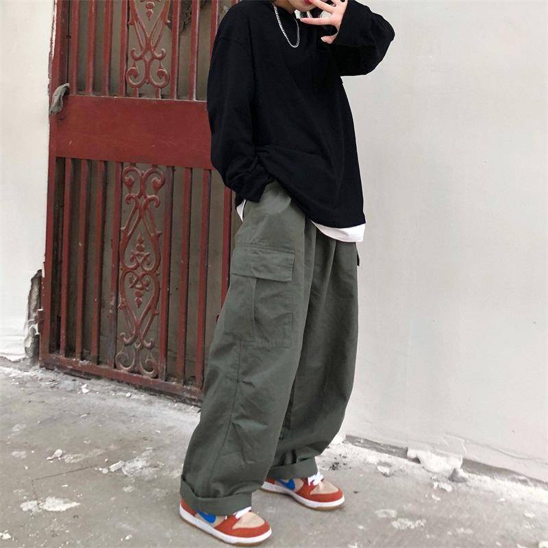 現貨 ? 工裝長褲日系寬鬆 oversize 大尺碼 工裝 工作褲 水洗長褲 長褲 軍工裝 多口袋 大口袋 軍裝