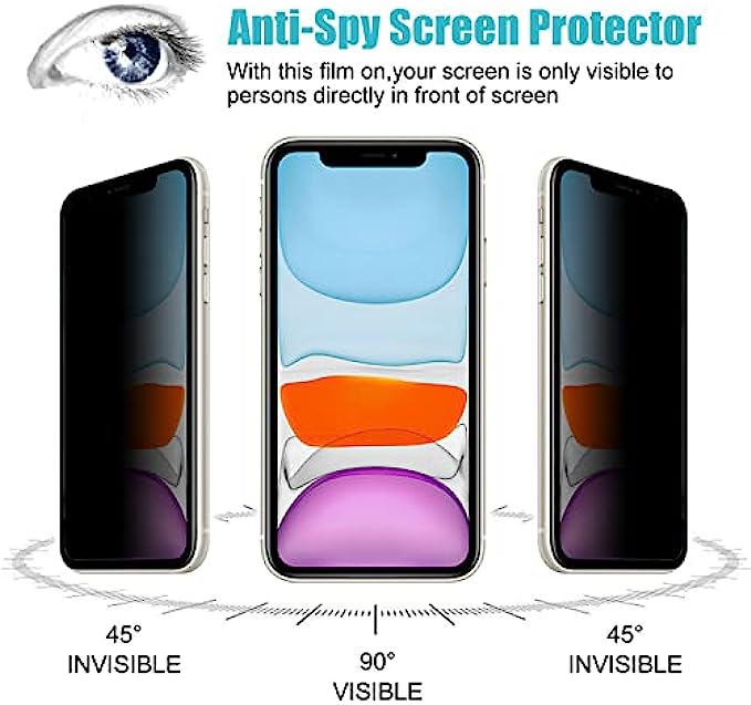 ?[Bonus Packs] Don't worry about installation mistakes, give an extra piece for a limited time. (3 pieces in total Specially designed for iPhone 11/iPhone XR) ?[Anti-Spy Tempered Glass] Choose the most appropriate color depth for the anti-peep coating, while satisfying privacy and visual comfort. Hides your private and sensitive information from strangers in public places. ?[Superior Quality] Made from the 0.33mm Highest Quality tempered glass with 100% Bubble-Free Adhesives for easy installation and no residue when removed. Maintains the Original Touch Experience, Hydrophobic and Oleo-phobic coatings protect against sweat and oil residue from fingerprint. ?[Case Friendly] iPhone 11/iPhone XR privacy screen protector will allow you to use almost all kinds of case.It is easy to finish the protectors by aligning the edges and the smooth feel allows you to enjoy every touch with the phone. ?[Package Included] 3 Pack Privacy Screen Protector, Wet/Dry Wipes, Dust Removal Stickers and Lifetime Warranty.
