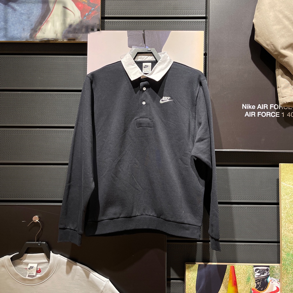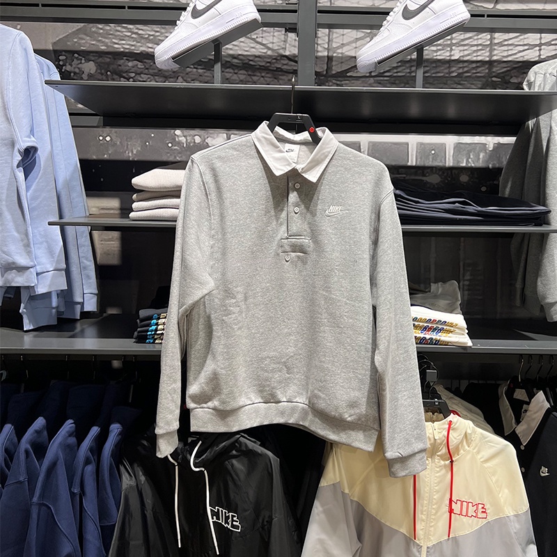 【Ready Stock】100%Authentic Nike Men's Embroidered Logo Sports Casual Sweatshirt Lapel Knit Polo Shirt Long Sleeve DX0538-063-010