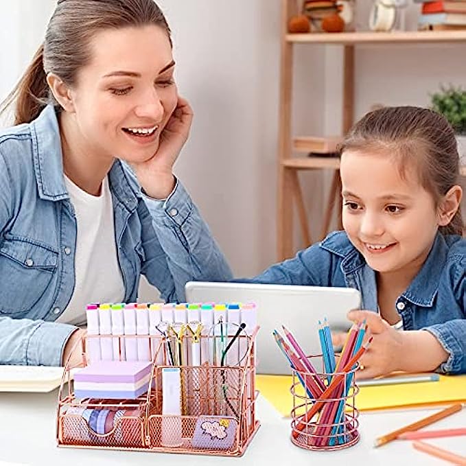 • MULTIFUNCCTIONAL DESK ORGANIZER:Whether you need a rose gold office desk organizer or one for your home, our rose gold desk accessories for women office are perfect. Good for office, studio, school, also good for organizing makeups and small household items. This great home office accessory fits anywhere you need.