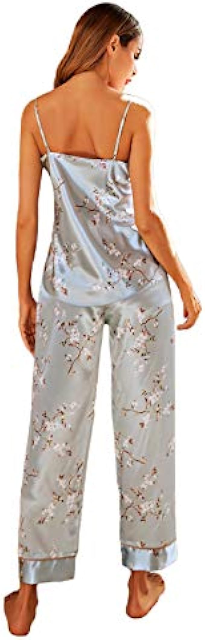 SheIn Women's 4 Piece Floral Cami Top and Shorts Pants Satin Pajama Set with Belted Robe