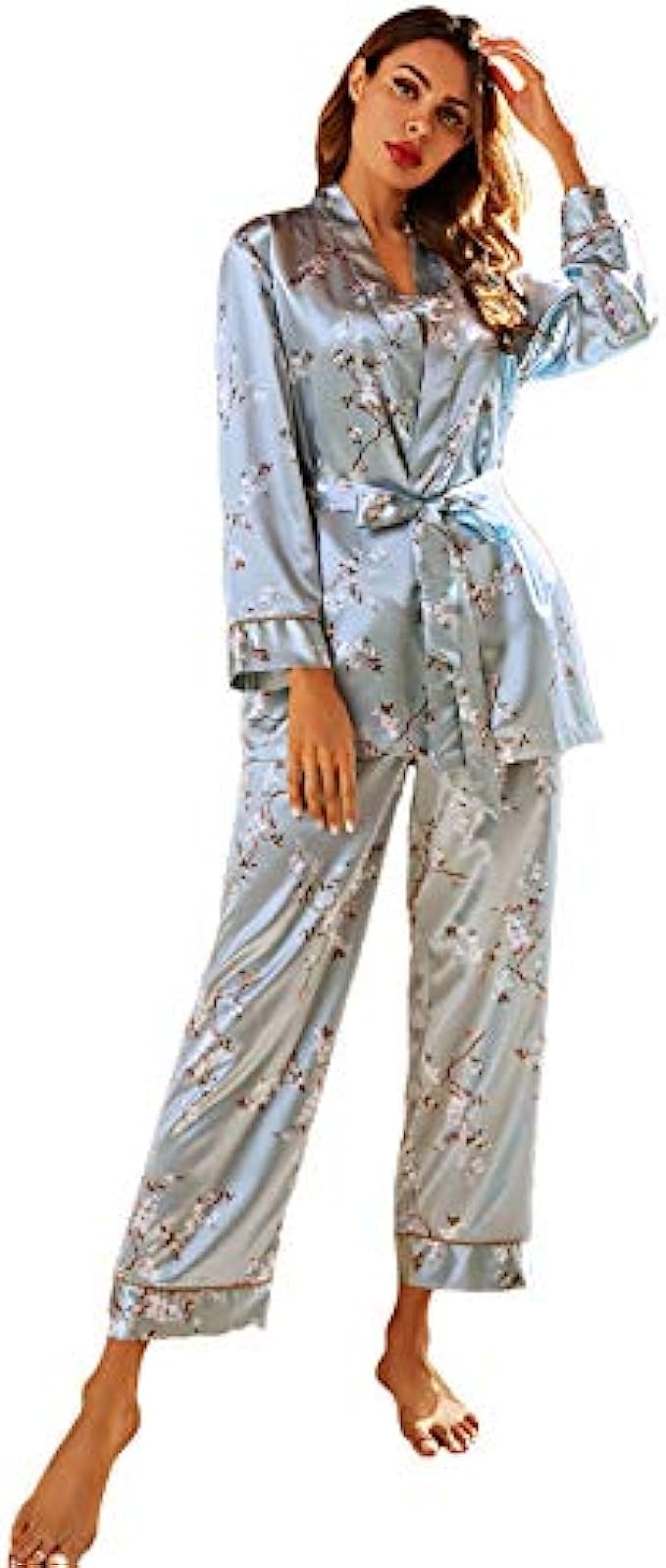 • The robe matching with long sleeve, belted tie front, this 4pcs pajama set meet all your needs, perfect dress for wearing at home, sleeping in, hotel, spa, etc