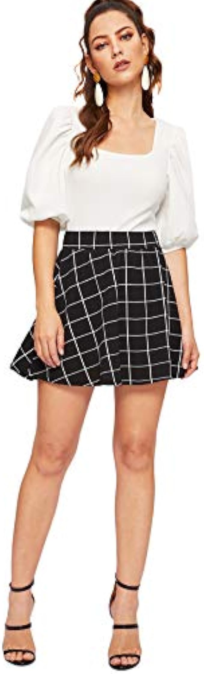 SheIn Women's Women's Basic Plaid Flared Mini Skater Skirt