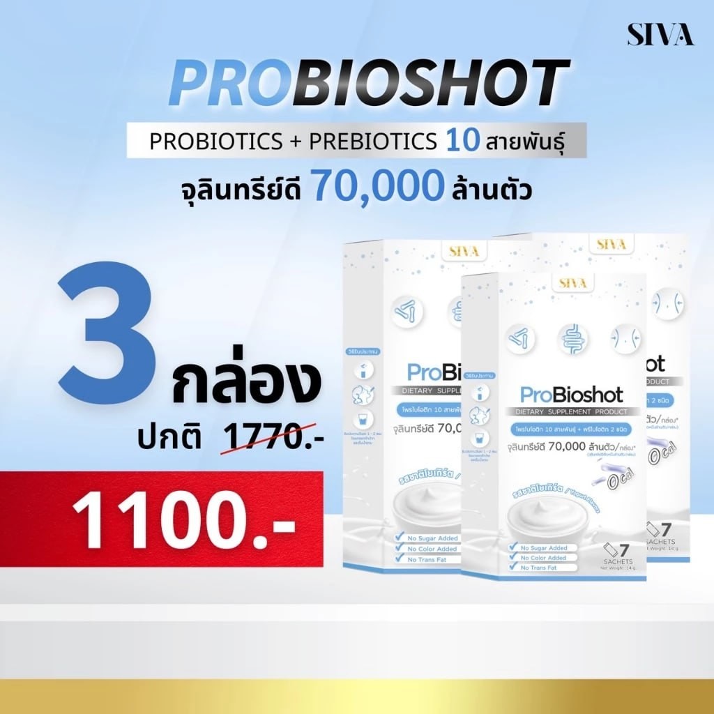 SIVA Probioshot (แพ็ค 3 กล่อง) โพรไบโอติก + พรีไบโอติก 10 สายพันธุ์ สำหรับคนท้องผูก ขับถ่ายยาก ปรับสมดุลลำไส้