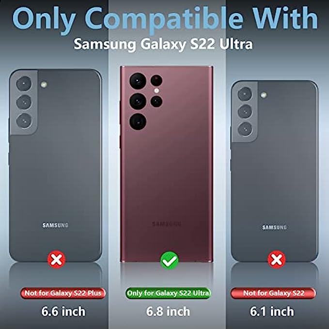 • 【Fit Perfectly】 Compatible with Samsung Galaxy S22 Ultra, 6.8" 2022 Released, clear back design. Completely fit in Samsung Galaxy S22 Ultra’s speaker, buttons, sensors, cameras and S Pen.