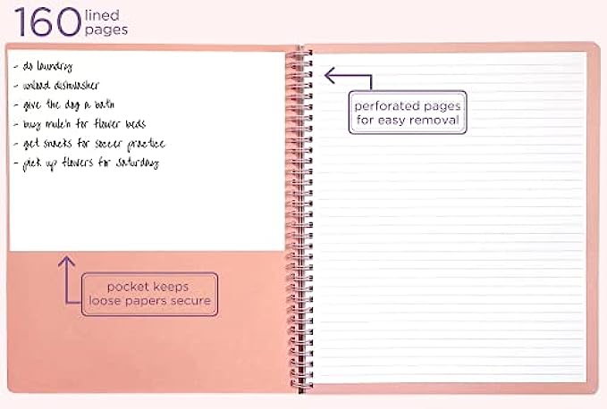 • INCLUDES 160 PAGES: Spiral notebook includes 160 high-quality, lined pages that withstand ink bleed-through; pages feature college ruled lines with a perforated edge to easily take to-dos, notes, and reminders on-the-go