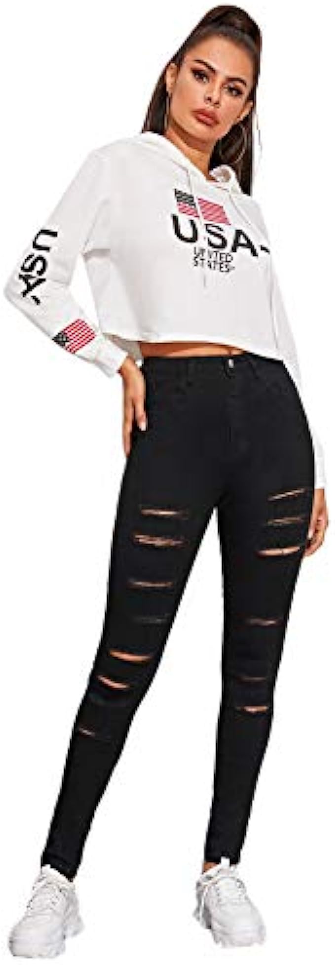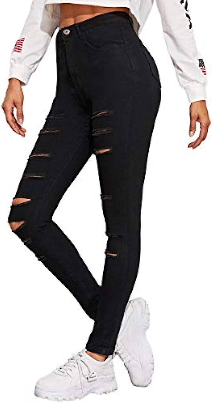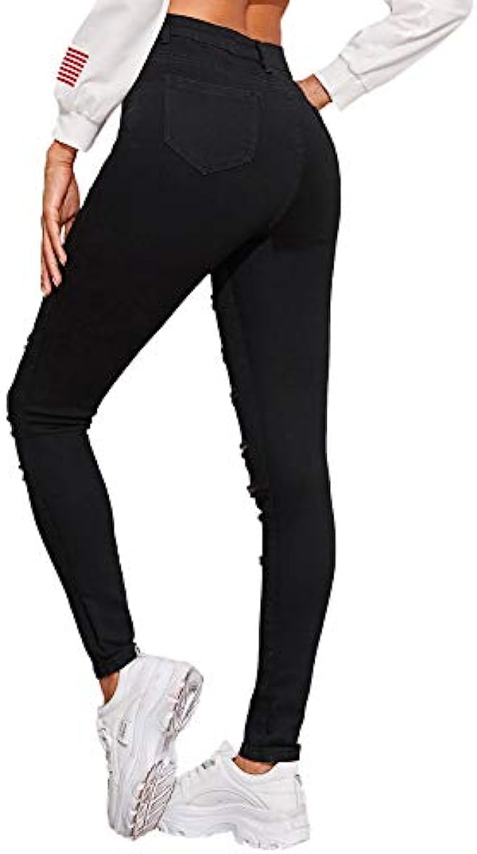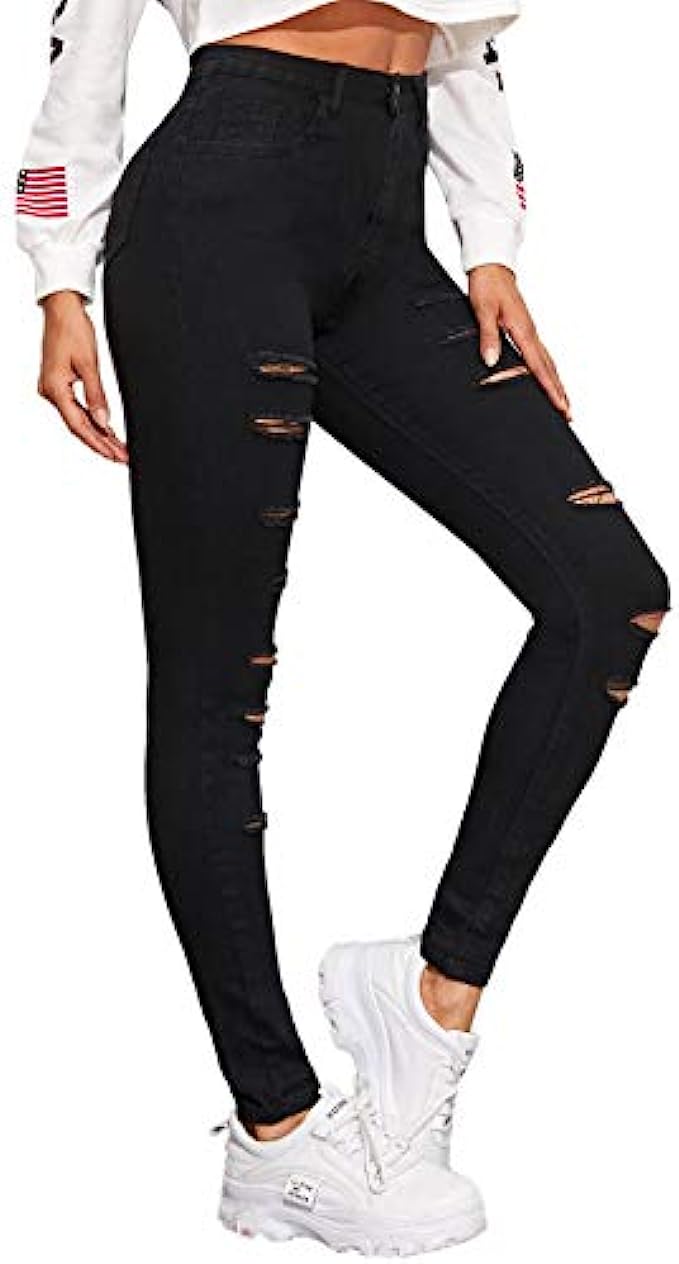 SweatyRocks Women's Hight Waisted Stretch Ripped Skinny Jeans Distressed Denim Pants