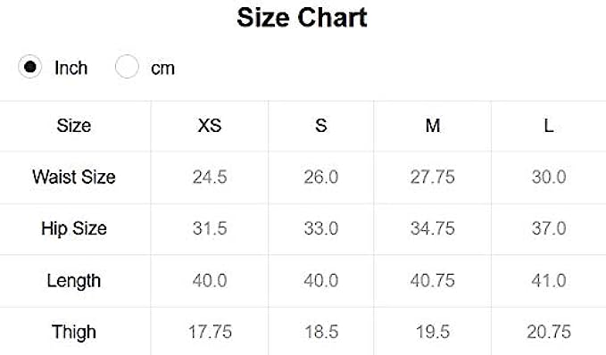 • S--Waist:27.7 inch, M--Waist:29.0 inch, L--Waist:30.7 inch, XL--Waist:32.5 inch