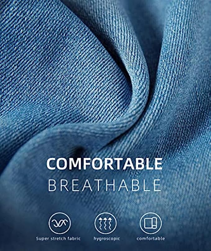 • ✿ PREMIUM FABRIC:Fabric blended with spandex for stretch and comfort, dress up or down in all-day comfort with a slim, flattering fit that stretches but retains its shape.Even after repeated wearing, this slim fit jeans stays true to original form.