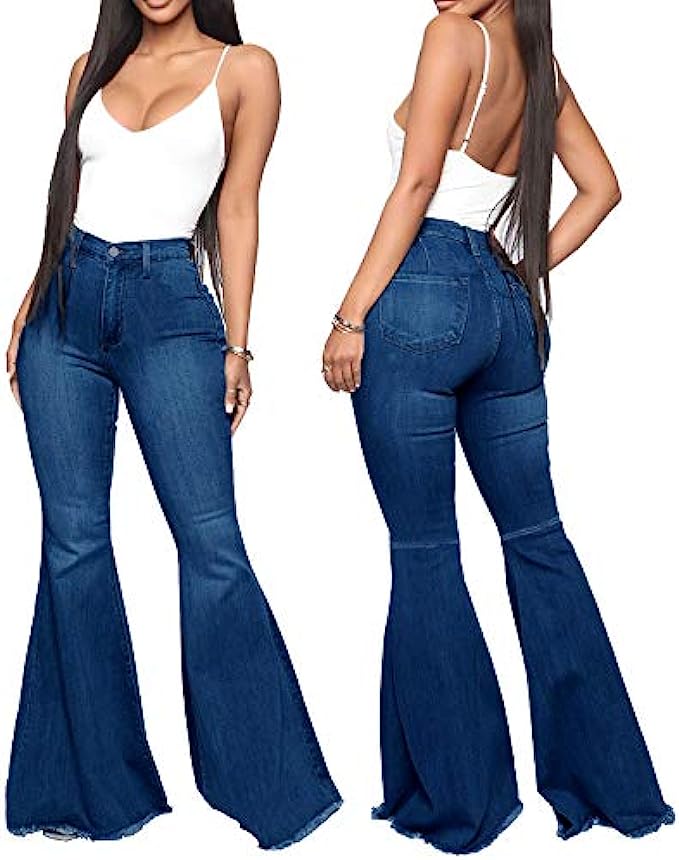 • Flare Bell Bottom Jeans Denim Pants for women,Ripped Destroyed Flare Denim Jeans for women,70s Outfits for Women. Perfect for modern fashion with a basic blouse, shirt, crop top, jacket, pullover sweater, sweatshirt,outwear coat and heels.