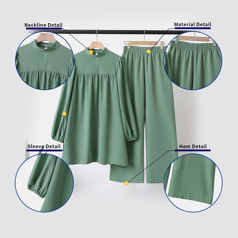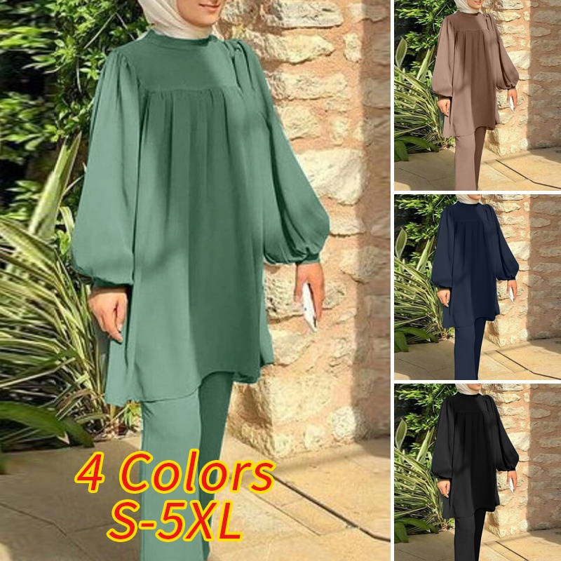 ZANZEA Women Muslim Casual Loose Long Sleeves Blouse+ Elastic Waist Pants Sets