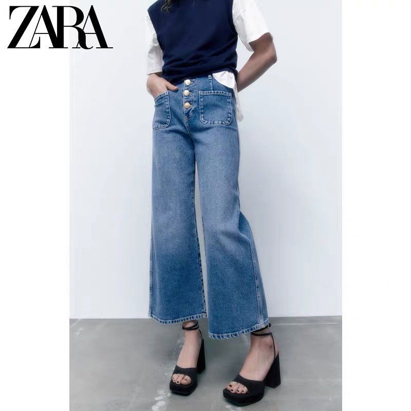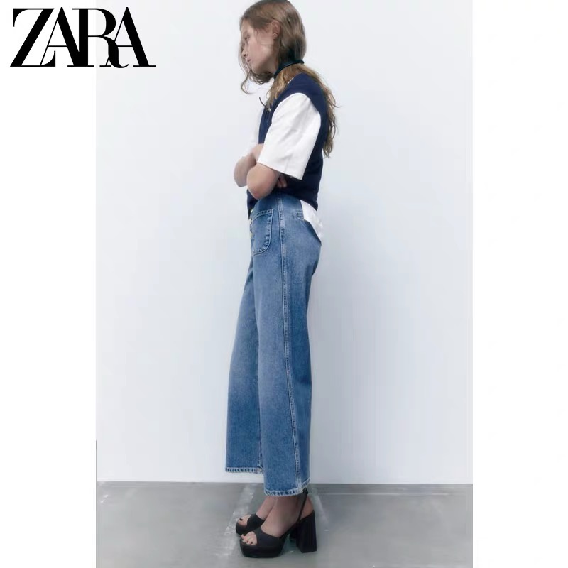 ZARA Summer New Style Women's Z1975 High Waist Loose Wide Leg Cropped Jeans 1889157 427