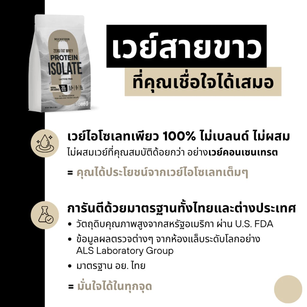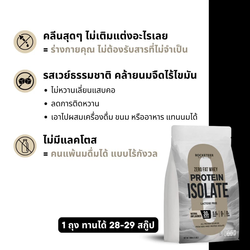 เวย์โปรตีน - ZERO FAT LEAN Whey Protein Isolate 100% - Rocketeer - เวย์โปรตีนไอโซเลท ไร้ไขมัน โปรตีน