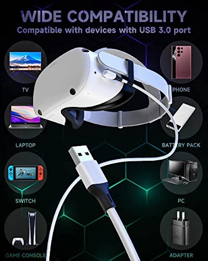 • ➤Durable Material : The VR headset link cable is made of high-quality PVC material, having good flexibility, stretch resistance, and abrasion resistance, and longer service life.