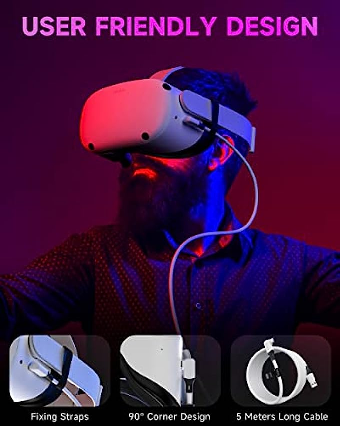 • ➤ Flexible and Comfortable : This 16ft quest 2 link cable gives you enough freedom of movement without being restricted while immersed in the VR world. The 90-degree USB C port conforms to the design of the quest 2 headset, makes you more stable and not easily damaged when playing. The attached Velcro strap fixes the cable and Quest to prevent disconnection during movement.