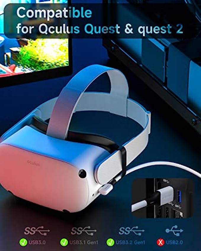 • ➤Design for Oculus Quest 2 : ZOOAUX link cable Compatible with Meta/Oculus Quest 2 Accessories, it can perfectly connects the Quest / Quest 2 to the gaming PC, so that you can play all Oculus Rift apps and Steam VR games, while simultaneously powering the headset. You can enjoy the vast and growing selection of PC VR games.